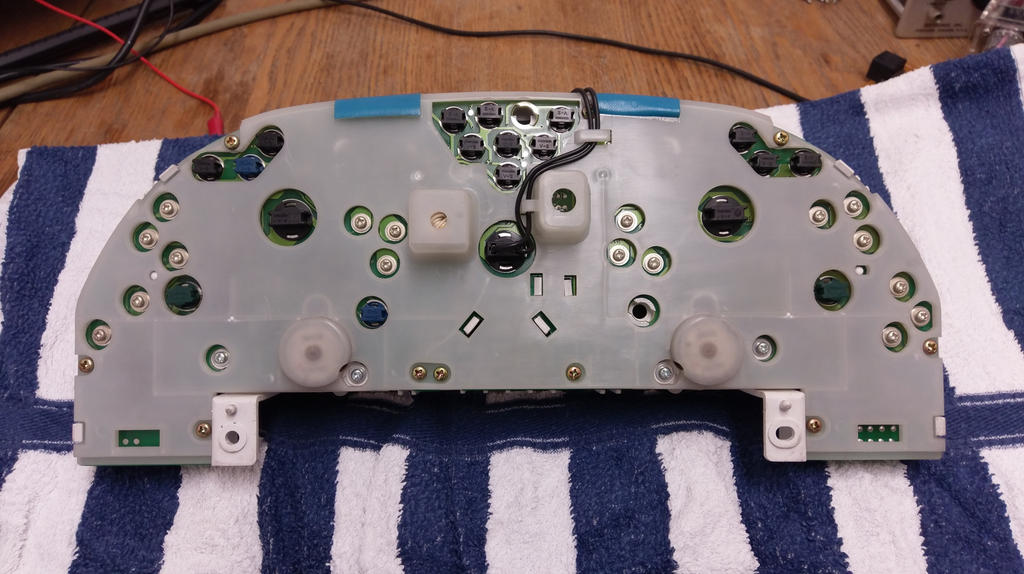 Introduction The Gauge Cluster suffers from ageing capacitors as many ECUs in the NSX. Leaking capacitors at the gauge cluster is a serious issue. Acid near the warning indicator circuit causes shorts and potentially lead to a fire. Same as with the other capacitor issues, a replacement should be considered before the unit fails. Diagnostic First signs are a non-accurate speed indication or a permanently lit brake light warning even though bulbs and wiring are OK. ...